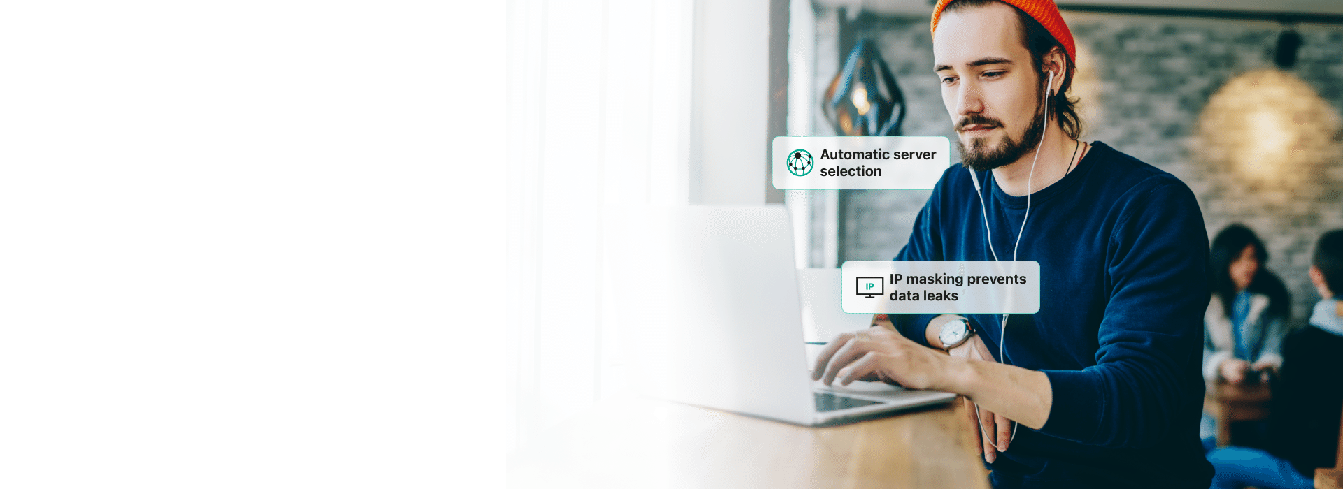 Kaspersky VPN secures your IP address, so nobody can see your connection or activity while you’re on the internet – especially useful for online shopping and banking. You’re also protected from data leaks on unsecured Wi-Fi hotspots – handy for working from cafés.